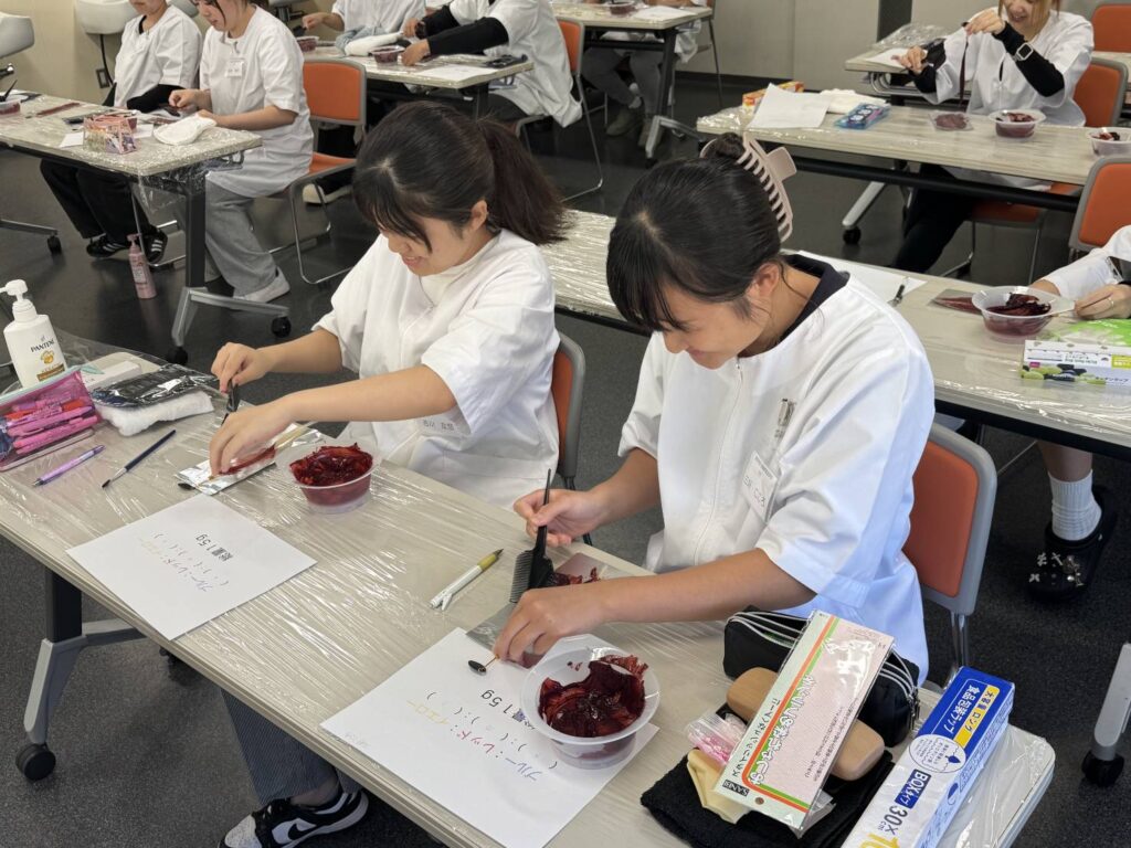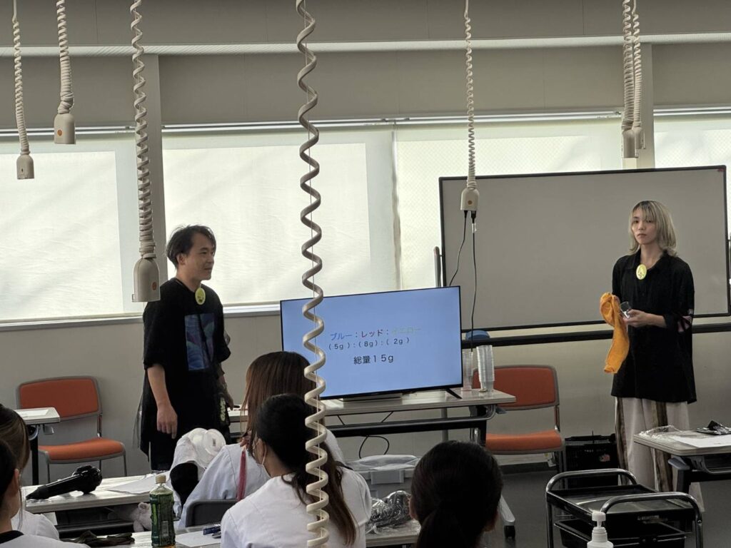 今年度も難波 匠先生にご指導いただきました。昨年と変わらず、パワフルで熱い授業となったようです。学生も楽しそうに絵具を使って「色の変化」や「目指す色」を作っていました。